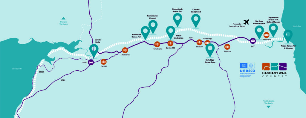 The Wall is serviced by two main railway stations, Carlisle in the West and Newcastle in the East, acting as the hubs into the length and breadth of Hadrian’s Wall.